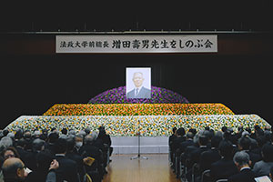 去る2018年9月15日に77歳で逝去した増田前総長の「しのぶ会」(代表 田中優子総長、実行委員会委員長 奥山利幸常務理事/経済学部教授)が、1月23日に市ケ谷キャンパスの薩埵ホールにて行われ、約300人が参列しました。