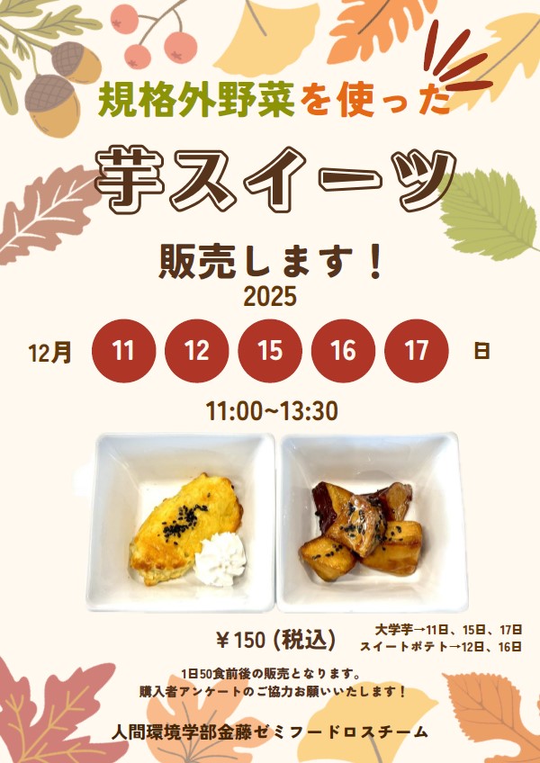 私たちは、規格外野菜が廃棄されてしまう現状を変えたいと考えています。形が不揃いでも、味や栄養は正規品と同じです。にもかかわらず市場に乗らず、農家の手間や想いが報われないケースが多くあります。今回の販売を通じて、「美味しい」「安い」というポジティブな体験から規格外野菜への理解が広がること、若い世代が食品ロス削減を身近な行動として捉えてくれること、さらに農家にとって継続的な販路確立につながることを願っています。学生が主体となり、社会課題の解決に向けて実践的に取り組む本企画を、ぜひ多くの方に知っていただき、共に持続可能な未来をつくる一歩にしていきたいと考えています。
