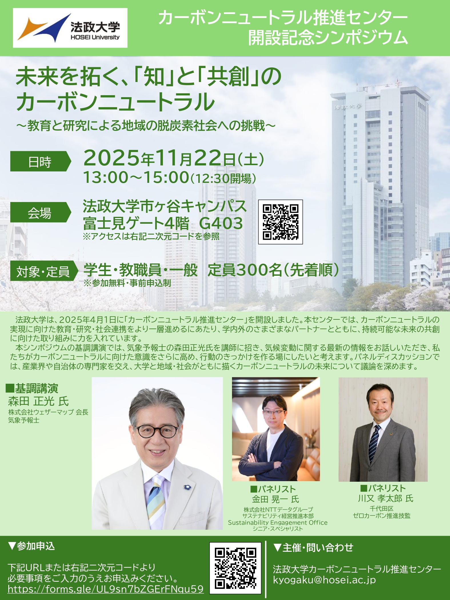 【参加者募集】法政大学カーボンニュートラル推進センター開設記念シンポジウムを開催します
