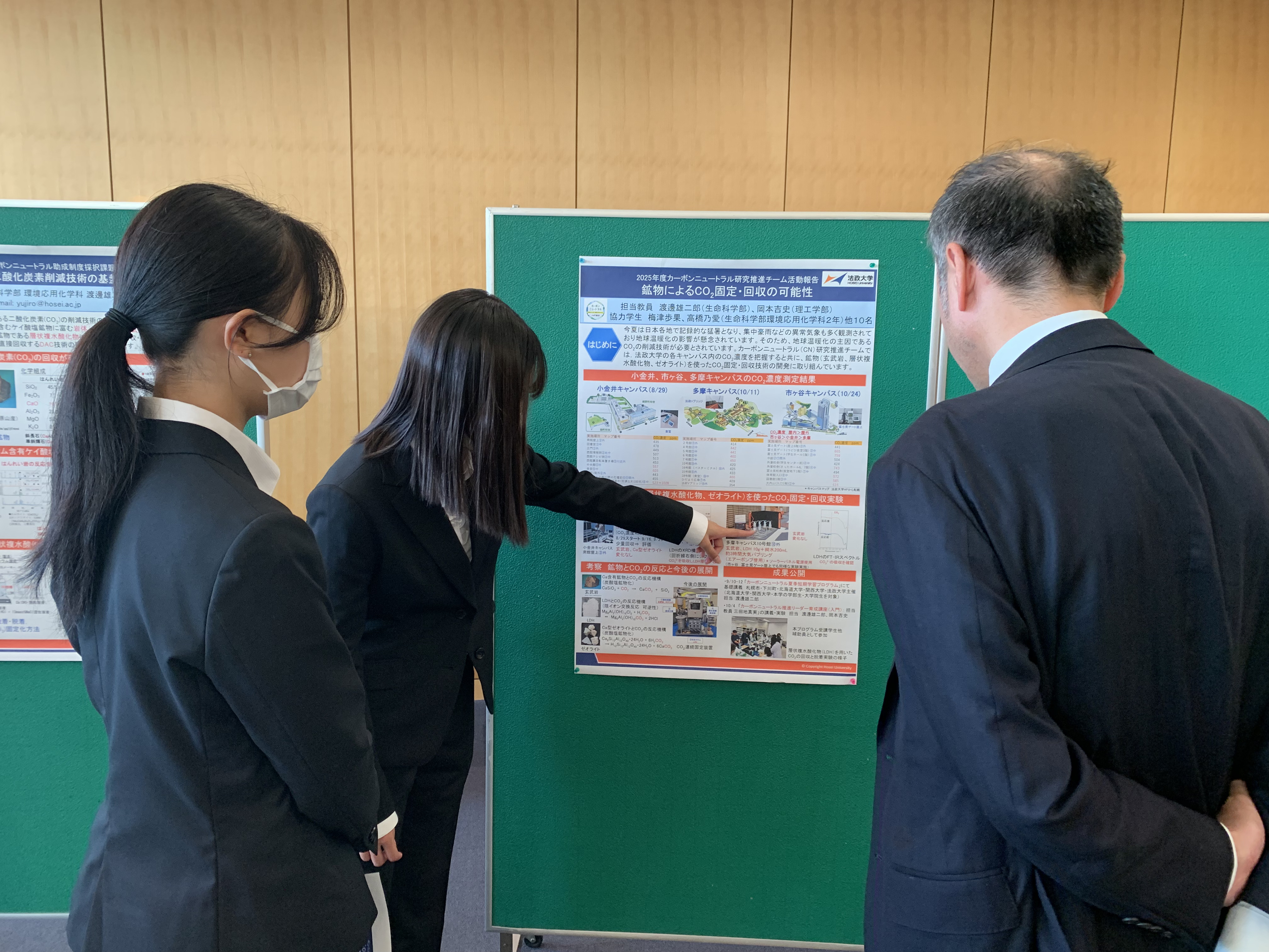 加えて、当日は、ポスターセッションもあわせて実施し、本学および本学に所属する教員や研究室で行うカーボンニュートラルに資する取り組みや研究を発信しました。
