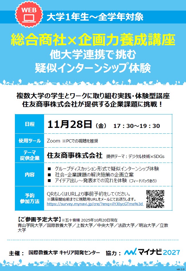 対象 2028卒(学部2年生),2029卒(学部1年生)