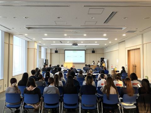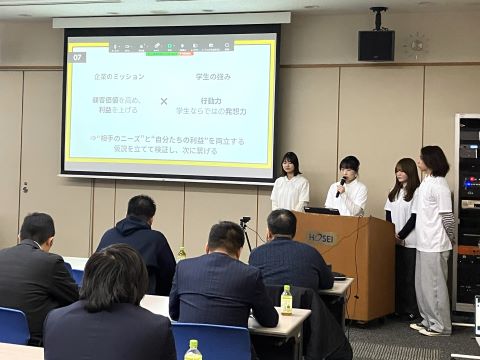 本授業は企業との連携によるプロジェクト型授業(PBL:Project Based Learning)です。2025年度は8社の企業の協力を得て、学生がチームとなって、商品開発・販売促進・イベントの企画・情報発信などに取り組んできました。報告会では、その約7ヵ月間の成果を発表しました。