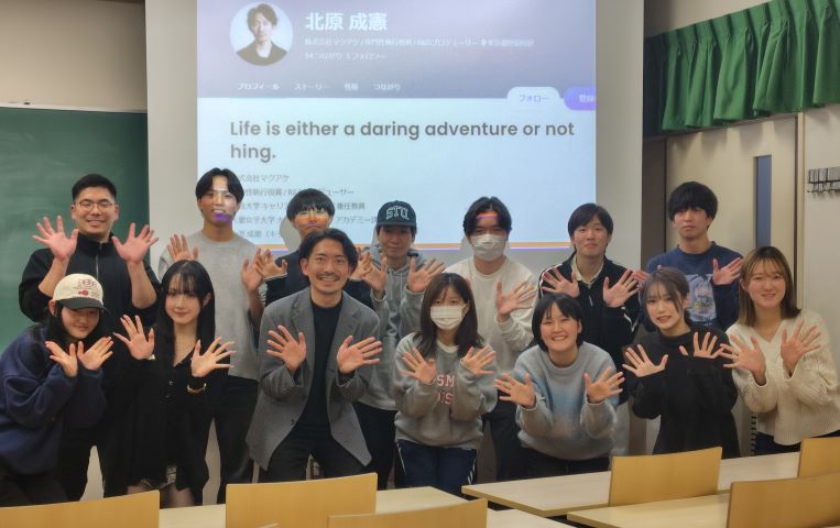 発表の際には、ゼミ生がSNS等を通じて企業の方々に声をかけ、実際にプレゼンを聞いていただき、フィードバックをもらいます。また、PBL以外にもゲスト会があり、社会で活躍する方のリアルな話を聞いたり、キャリア相談をしたりする機会も設けています。