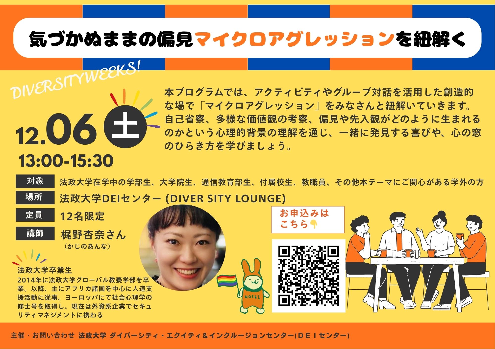 本プログラムでは、アクティビティやグループ対話を活用した創造的 な場で「マイクロアグレッション」をみなさんと紐解いていきます。