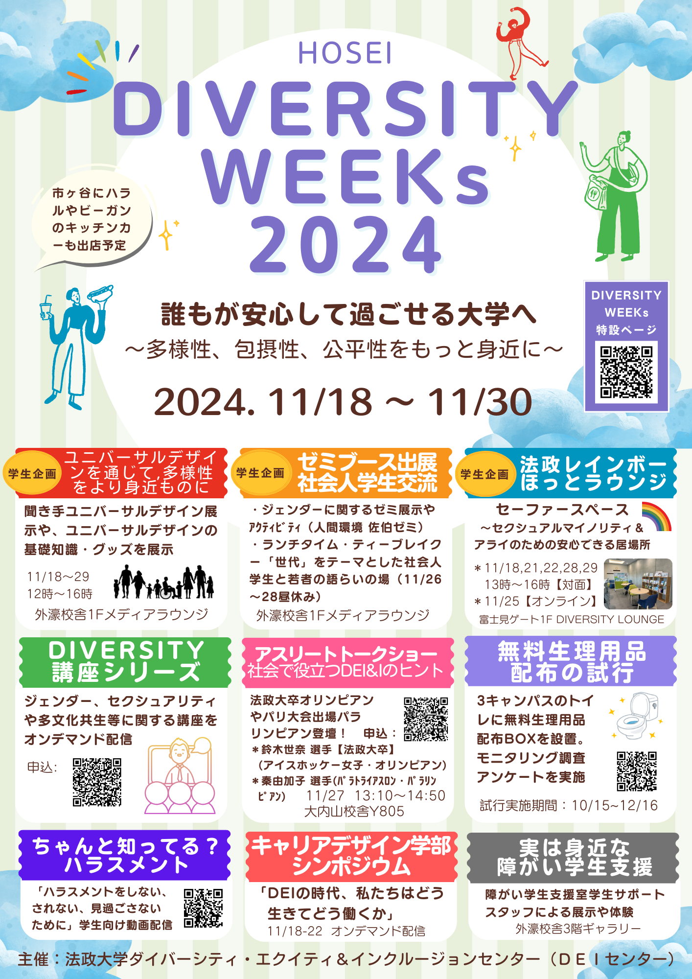 法政大学では、下記期間に「HOSEI DIVERSITY WEEKs 2024」を開催します。