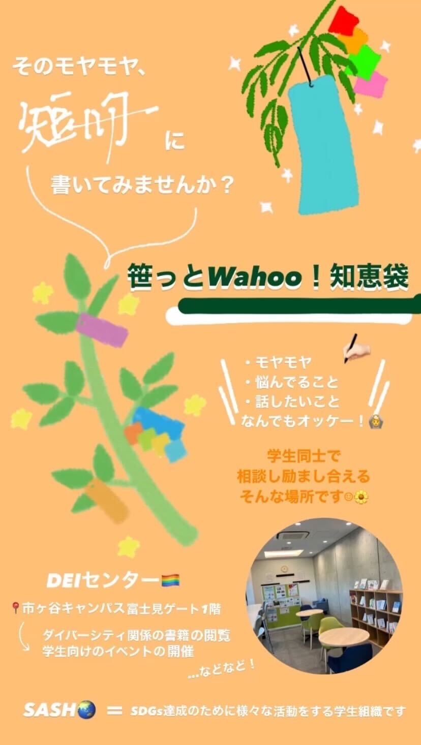 「笹っとWahoo!知恵袋」は、学生同士で気持ちを気軽に共有し合い、支え合うことを目的とした、DEIセンターと法政大学公認学生組織SASHの新たな取り組みです。