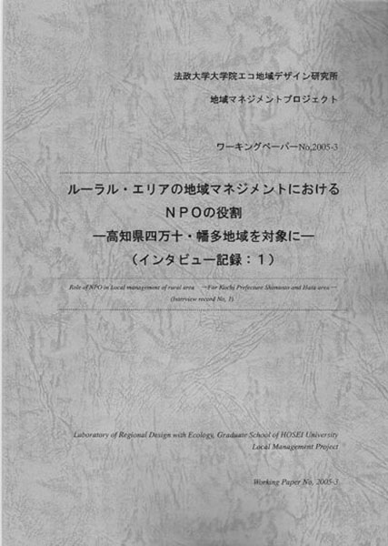 「ルーラル・エリアの地域マネジメントにおけるNPOの役割―高知県四万十・幡多地域を対象に―(インタビュー記録1)」