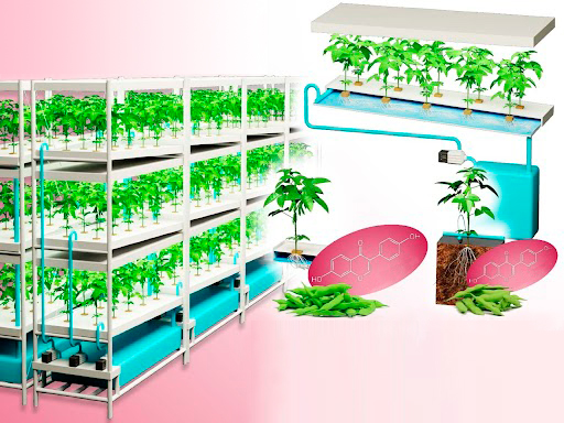 Caption: NFT hydroponic cultivation enables year-round edamame production under LED plant factories, boosting pod yield, sugar content, and isoflavones, while overcoming seasonal and environmental limitations of conventional field cultivation