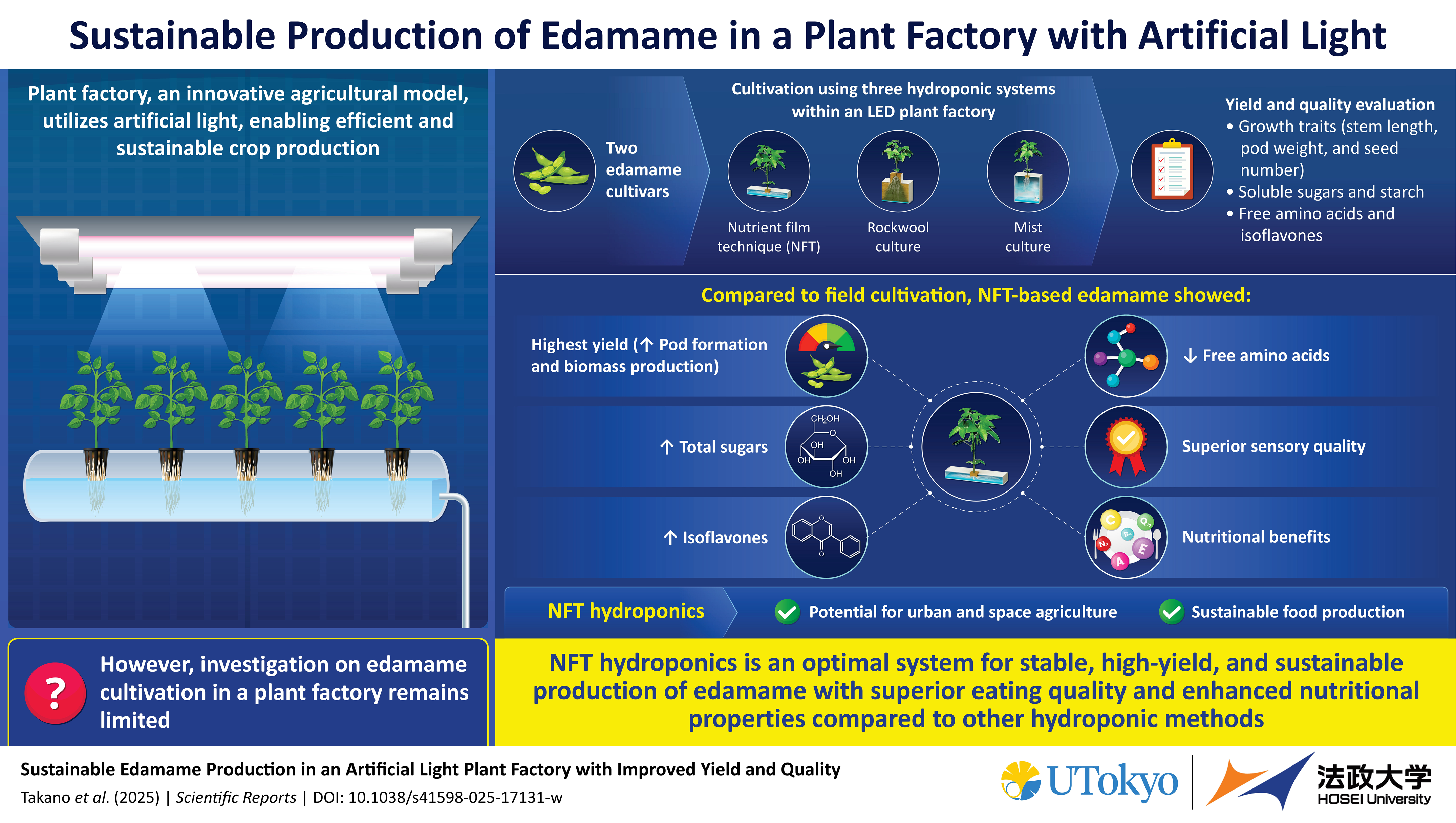 Against this backdrop, the research group, led by Professor Toshio Sano from the Faculty of Bioscience and Applied Chemistry, Hosei University, Japan, and Associate Professor Wataru Yamori of the Graduate School of Agricultural and Life Sciences, The University of Tokyo, Japan, had previously gained attention for successfully cultivating tomatoes under LED lighting in a plant factory. Building on that success, they set out to tackle edamame, a high-protein, nutrient-rich legume widely consumed worldwide. The findings were published online in the Volume 15 of the journal Scientific Reports on September 12, 2025.