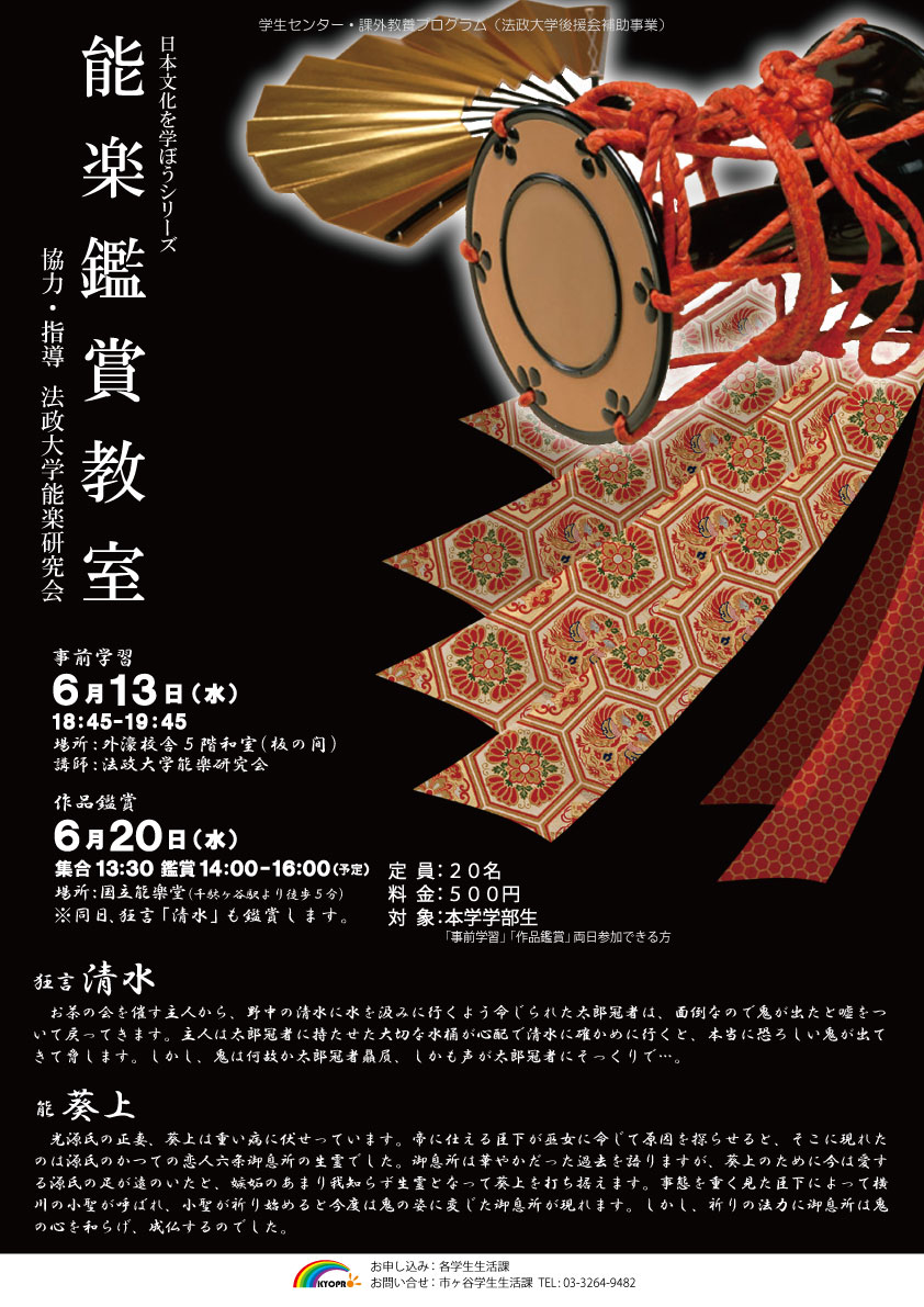 より理解を深めるため、事前に法政大学能楽研究会が楽しく解説します。