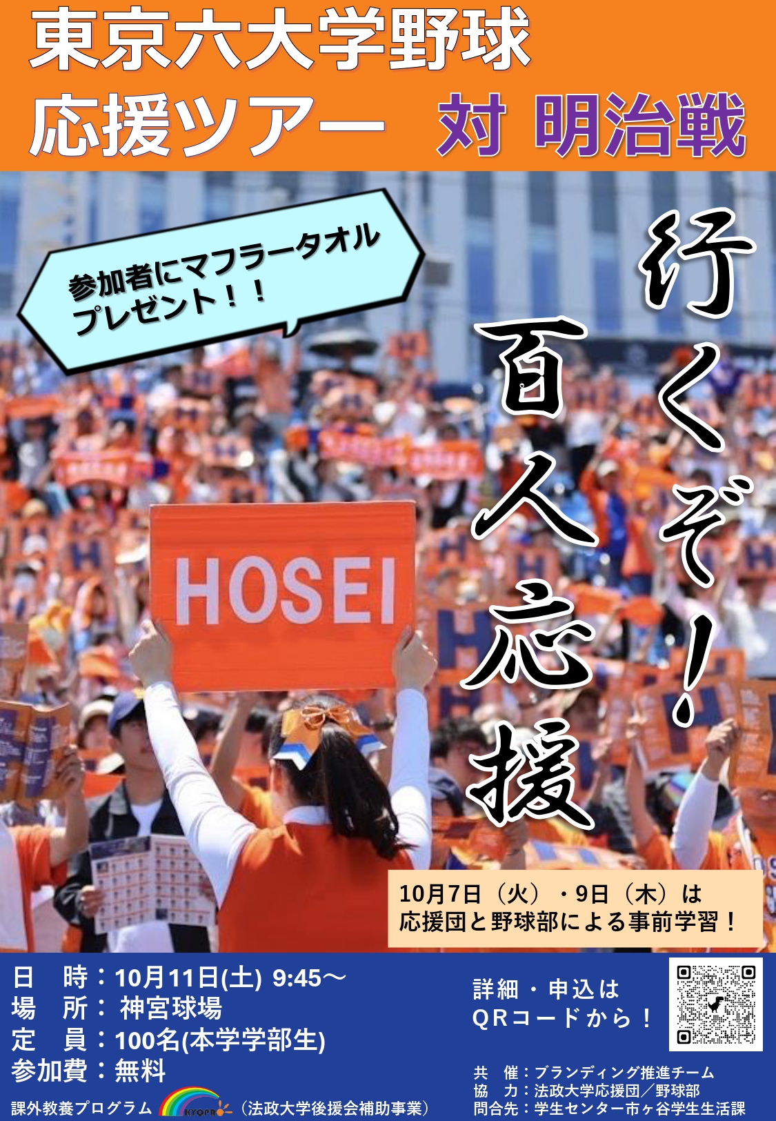 今回のプログラムは「法政スポーツ」の応援を通じて、法政大学への帰属意識の涵養や学生同士の交流のきっかけづくりを目的として企画されました。