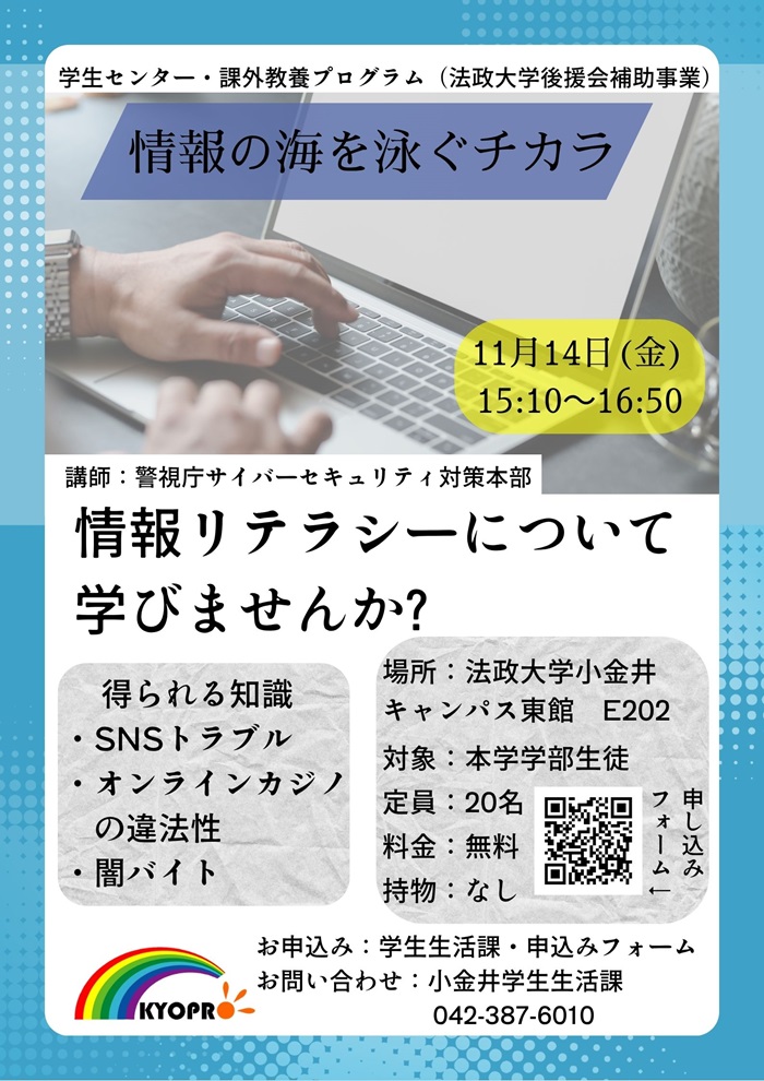 現代はインターネットが普及し、SNS に触れる機会が増えてきています。それに伴い、オ ンラインカジノや闇バイトなど、インターネット特有の犯罪行為も増加しています。本プ ログラムでは、専門店で講師の指導のもと、情報リテラシーについて学びます。