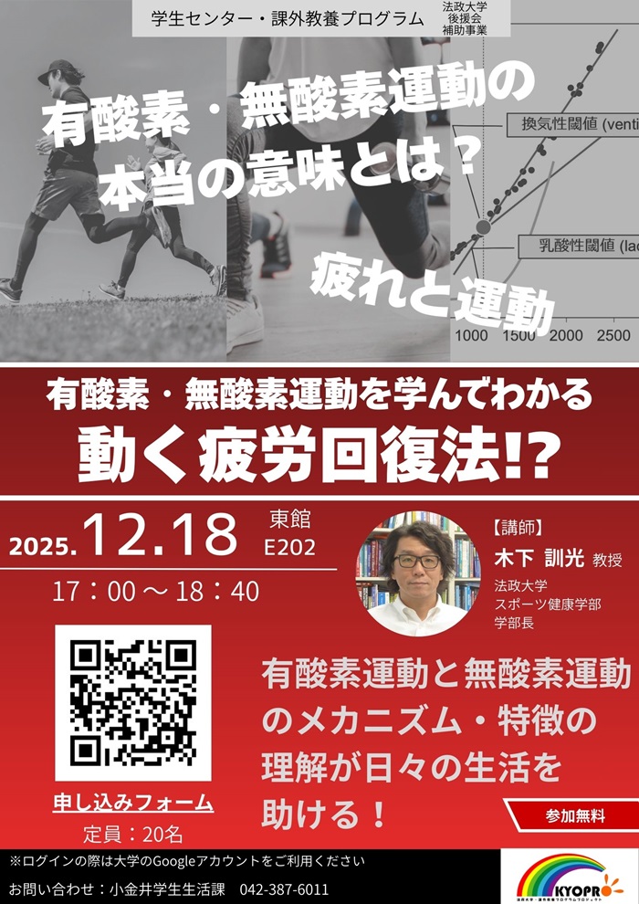 課外教養プログラム「有酸素・無酸素運動を学んでわかる動く疲労回復法!?」(12/18)
