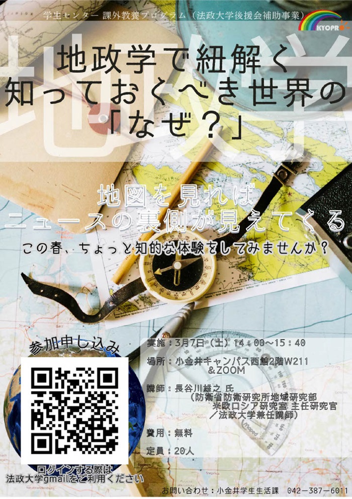 今年度法政大学法学部で講義をご担当されている現役の【防衛省 防衛研究所】の方を講師にお招きし、最前線のリアルな視点から地政学を学ぶ特別講座を開催します!