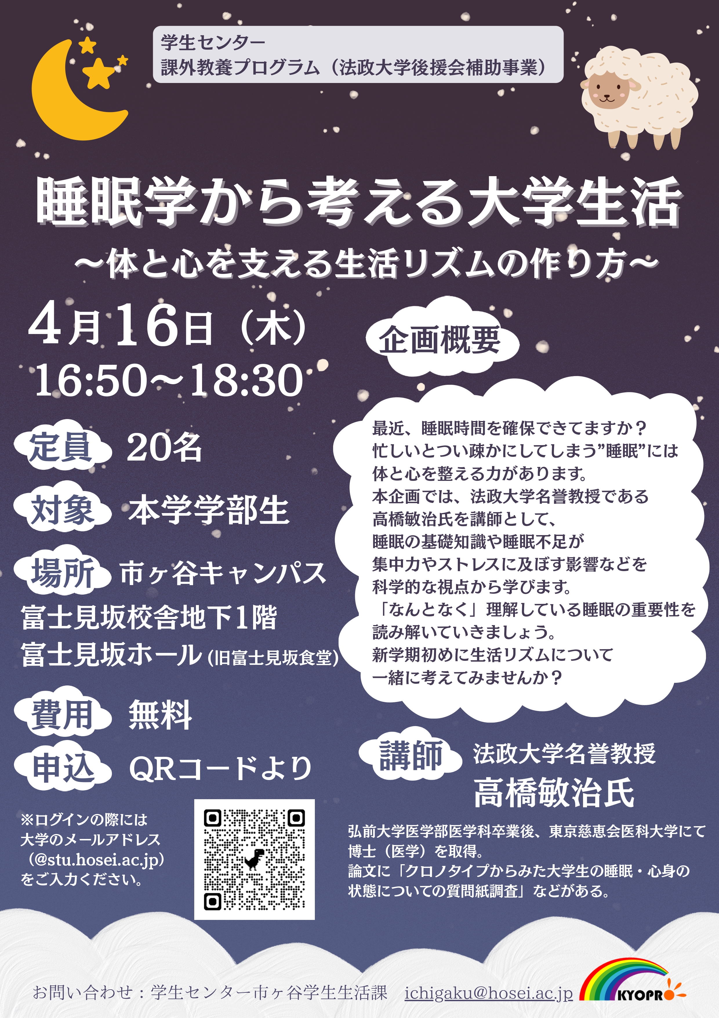課外教養プログラム「睡眠学から考える大学生活~心と体を支える生活リズムの作り方~(4/16)