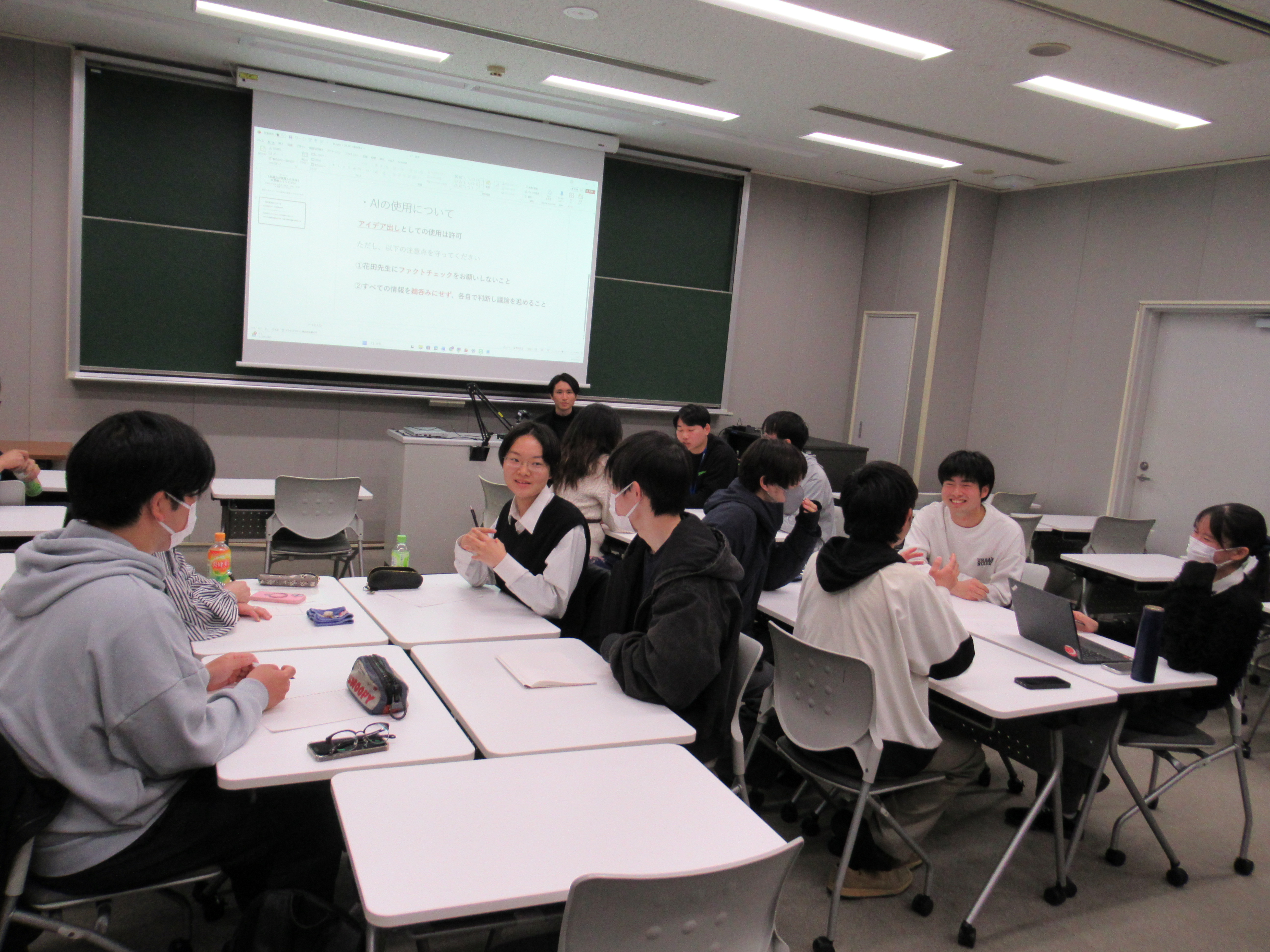 その問いを深めるために、グループワークの全体発表と花田氏からの講評、そして質疑応答を行いました。そこで、自分たちが思い描いた未来に対して世界が現在どう動いているのか、そしてその未来を実現するために本当に必要なものは何なのかを、専門家から直接確かめることができました。