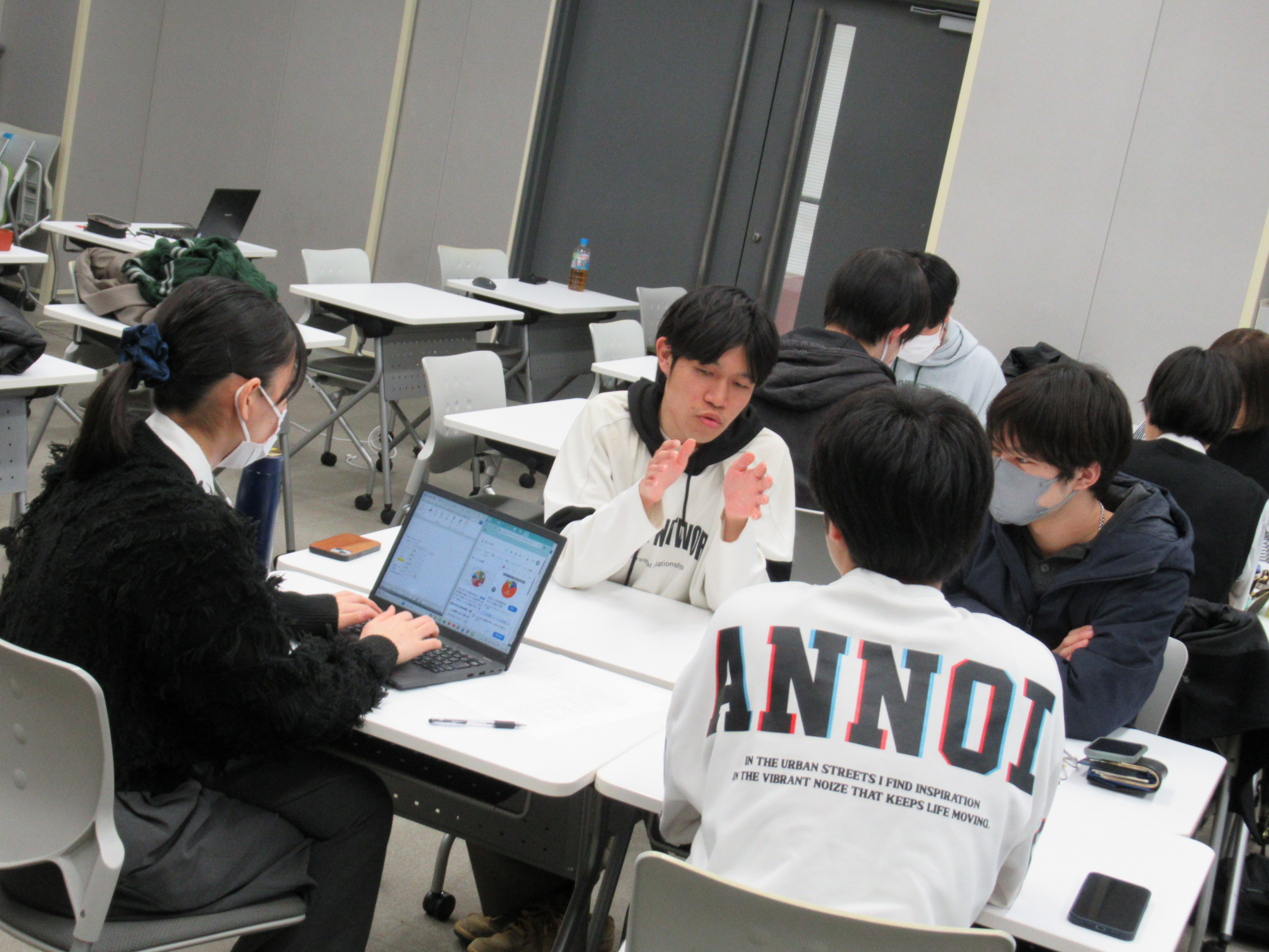 「核融合が実現した社会」について考えるグループワークの様子①