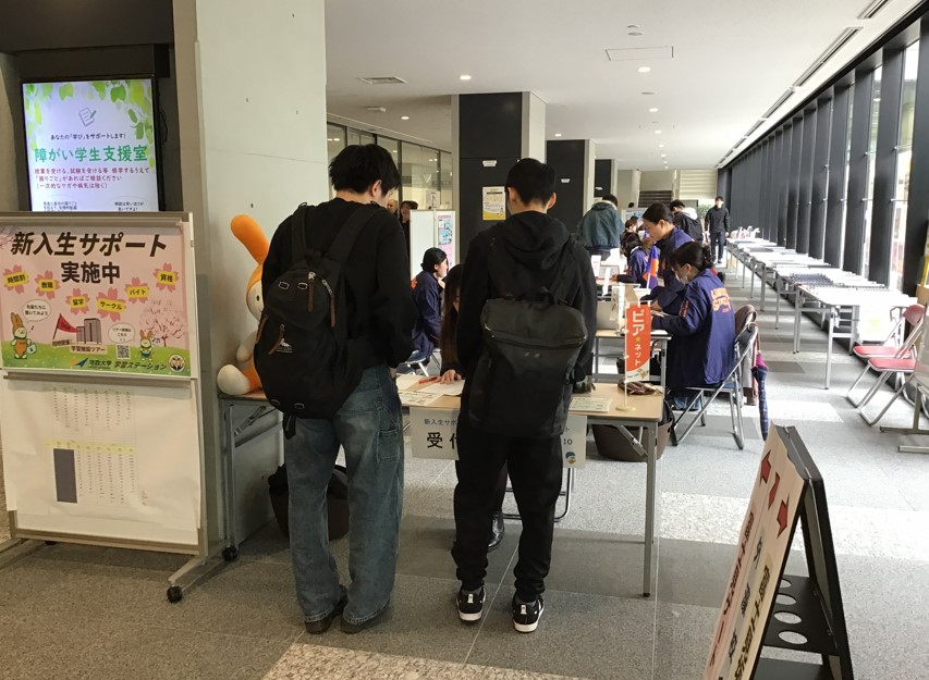 入学直後で不安を抱えている新入生に対して、先輩学生(新入生サポーター)が学生生活や履修に関する相談に乗ることや、