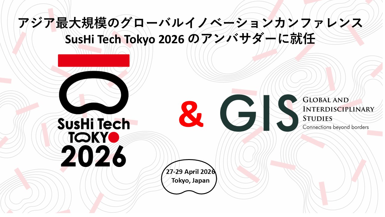 法政大学グローバル教養学部(GIS)は、2026年4月27日(月)~29日(水)に日本・東京にて開催される、グローバルイノベーションカンファレンス「SusHi Tech Tokyo 2026 (スシテックトウキョウ2026)」のアンバサダー就任が決まりましたのでお知らせいたします。
