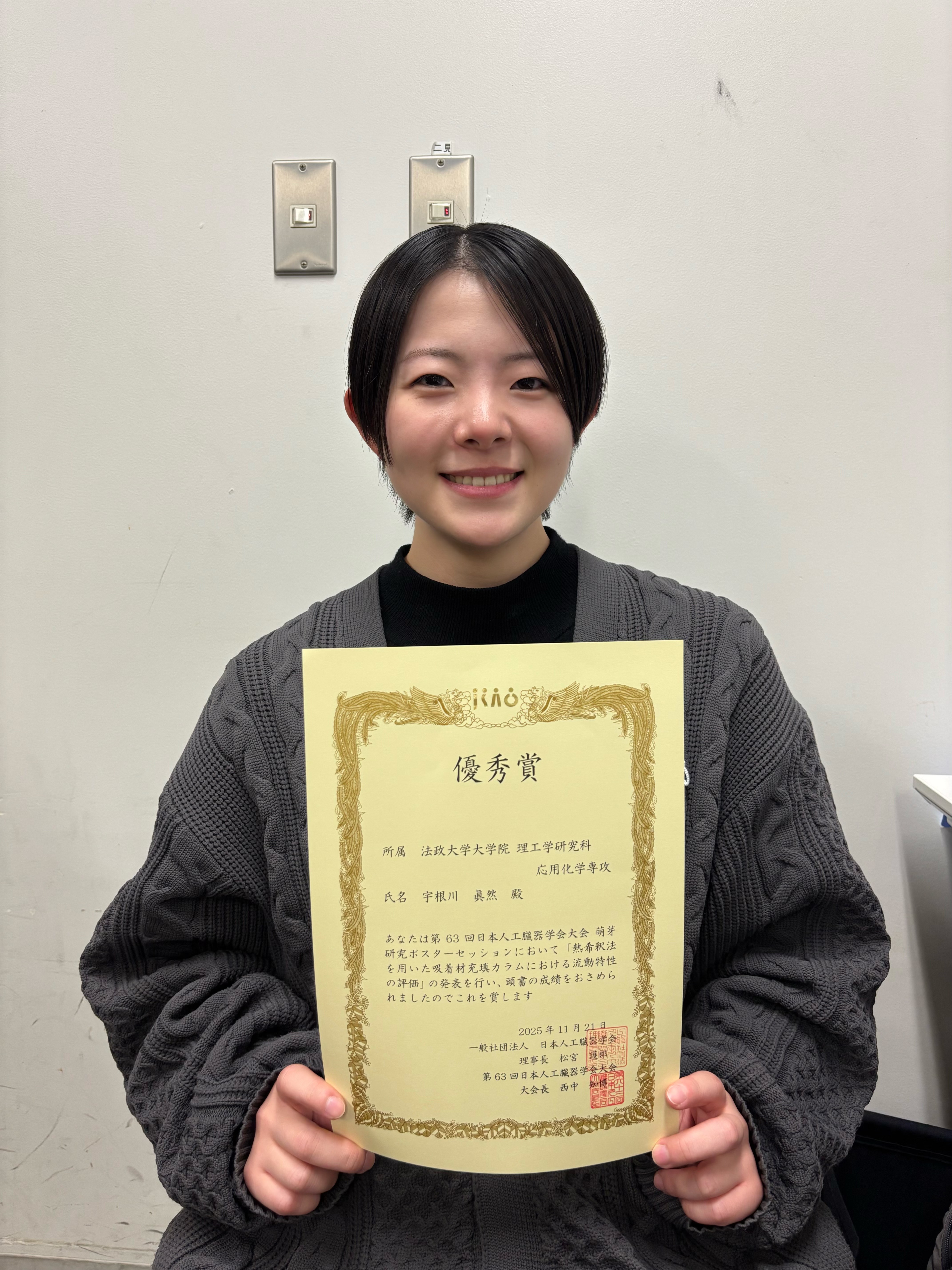 ・受賞者:  宇根川 眞然さん(応用化学専攻 修士課程2年)
