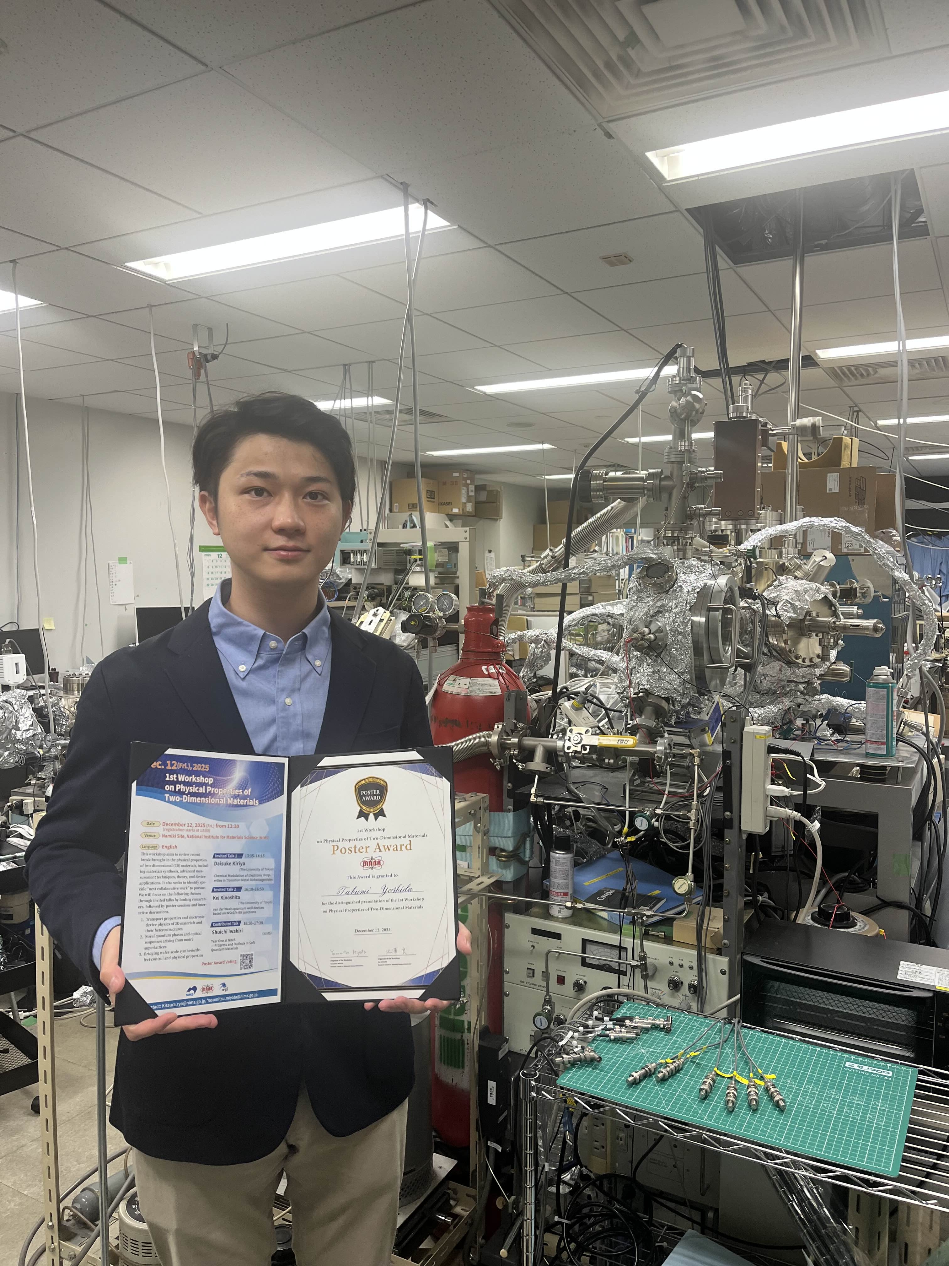 理工学研究科博士後期課程に在学中の吉田 巧さん(髙井 和之研究室)が、1st Workshop on Physical Properties of Two-Dimensional MaterialsでPoster Awardを受賞しました。
