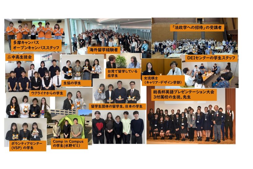 The column “The President’s Encounters” began with my meeting the Open Campus student staff at the Tama Campus. During the campus tour, they enthusiastically explained not only the buildings and facilities but also what student life is like there. When the tour ended, it felt somewhat strange simply to say “Thank you” and “Goodbye” and head straight to the next meeting. So instead, I suggested taking a photo together.