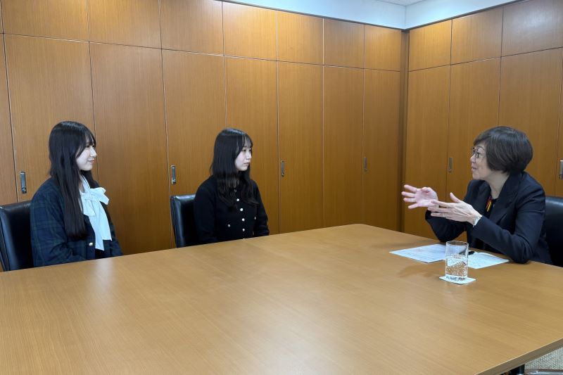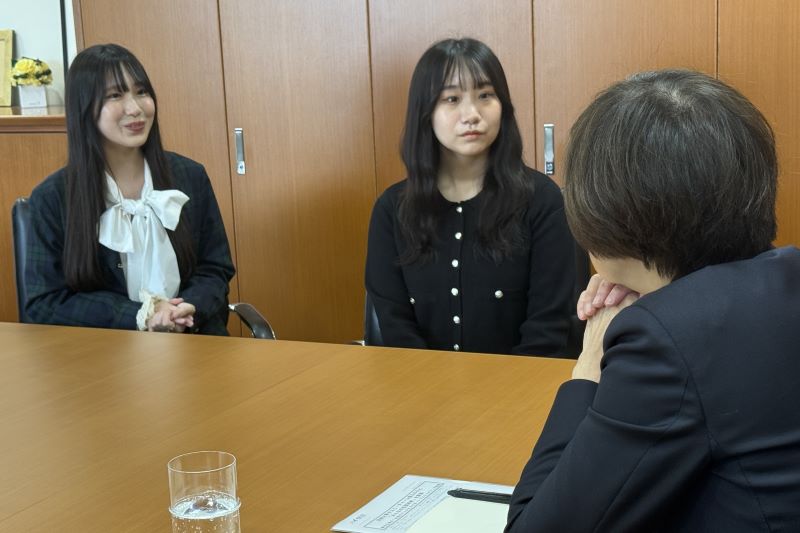 ボランティアセンターVSP(ボランティア支援プロジェクト)の2名の学生スタッフとお話ししているとき、どうしても「自由を生き抜く実践知」という言葉が頭から離れませんでした。お二人の活動は、まさに本学が大切にしている理念を体現しており、「どこでも生き抜く力を備えた」フロントランナーこそ、本学が育てていきたい姿そのものだと感じました。