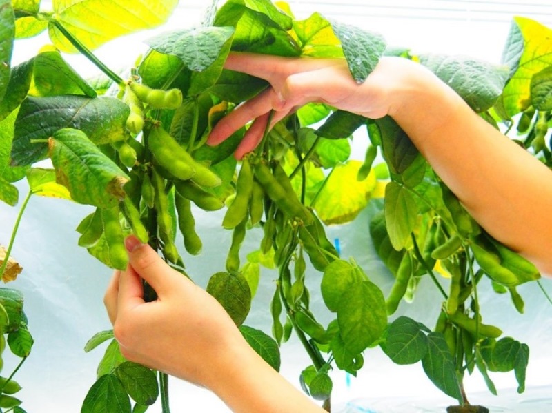 LED植物工場での養液栽培により、この栄養価の高いエダマメを、世界で初めて畑での栽培を上回る収量でおいしく育てることに成功しました。