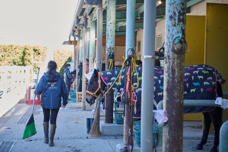 As the Year of the Horse commenced, the official Hosei SNS accounts released a series of videos featuring the beautiful horses residing on the Tama Campus. These retired racehorses are at the heart of a multifaceted project undertaken by the Institute of Human-Horse Well-Being headed by Professor Kyota Takami (Faculty of Sports and Health Studies), which connects equestrian athletes, local communities, and even international aid organizations.