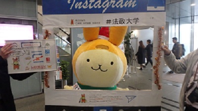 当日は、「えこぴょん」着ぐるみも登場して、外濠校舎1、3、4階で昼休みの短い時間帯ではありましたが、インスタ枠も用意し多くの学生さんに関心を持っていただきました。