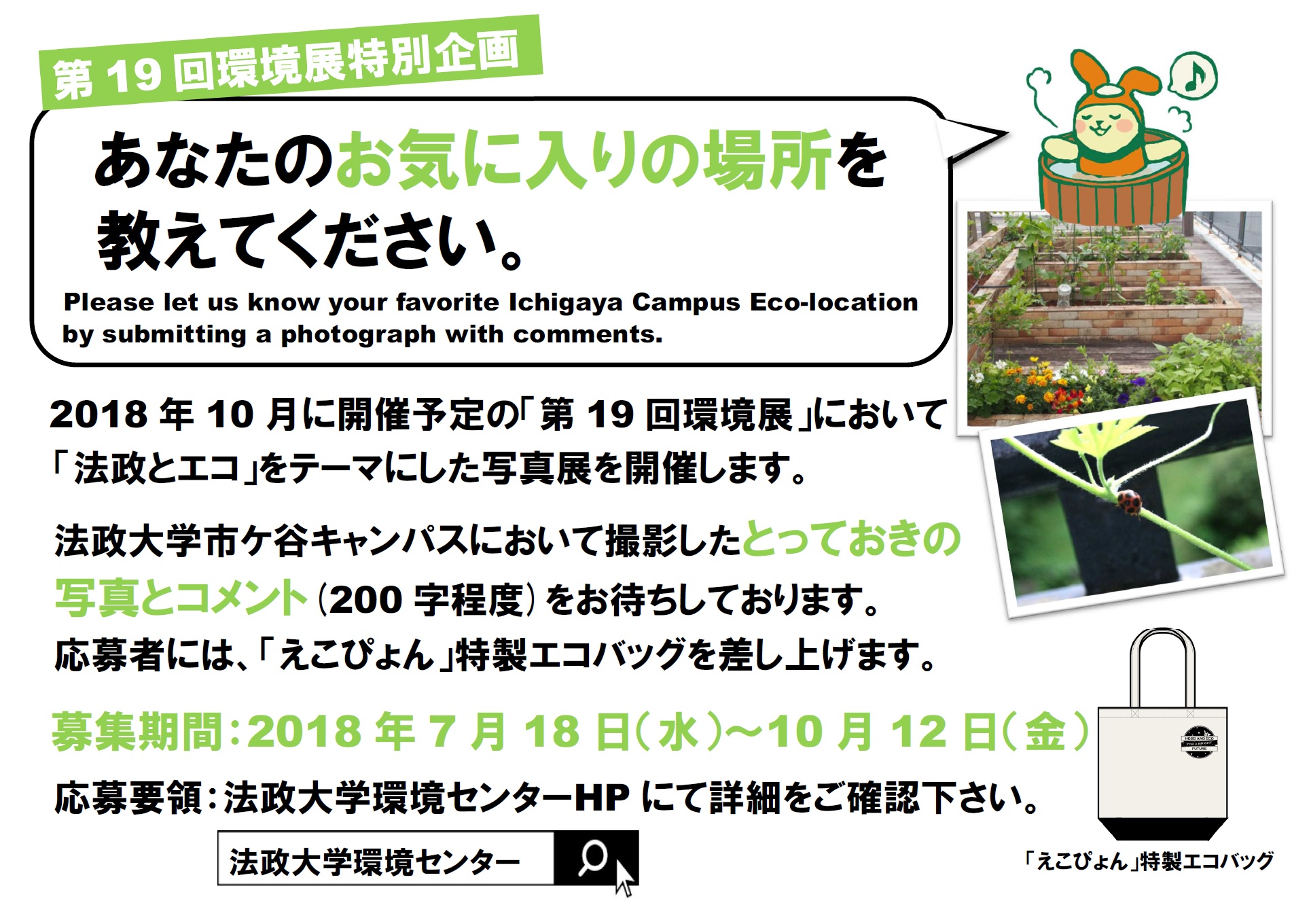 本学市ケ谷キャンパスにおいては、2018年10月22日(月)~26日(金)にかけて「第19回環境展」を開催します。