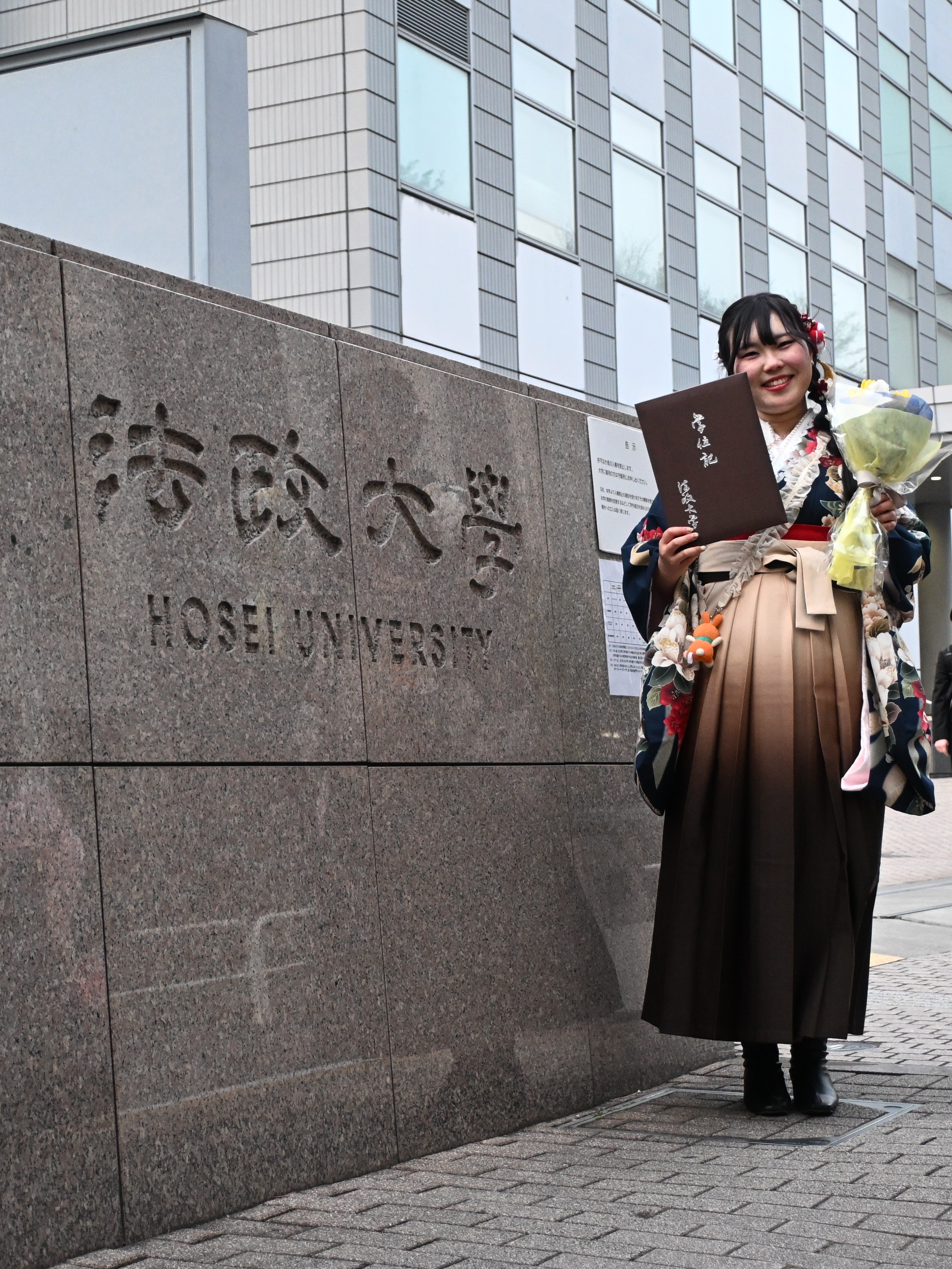 去る3月24日、法政大学学位授与式が執り行われました。今回は、経営学部の卒業生(4年生)のなかから、小池凛さん、吉村果那子さん、渡辺真弓さん、殿岡耕介さんの4名にインタビューさせていただきました。