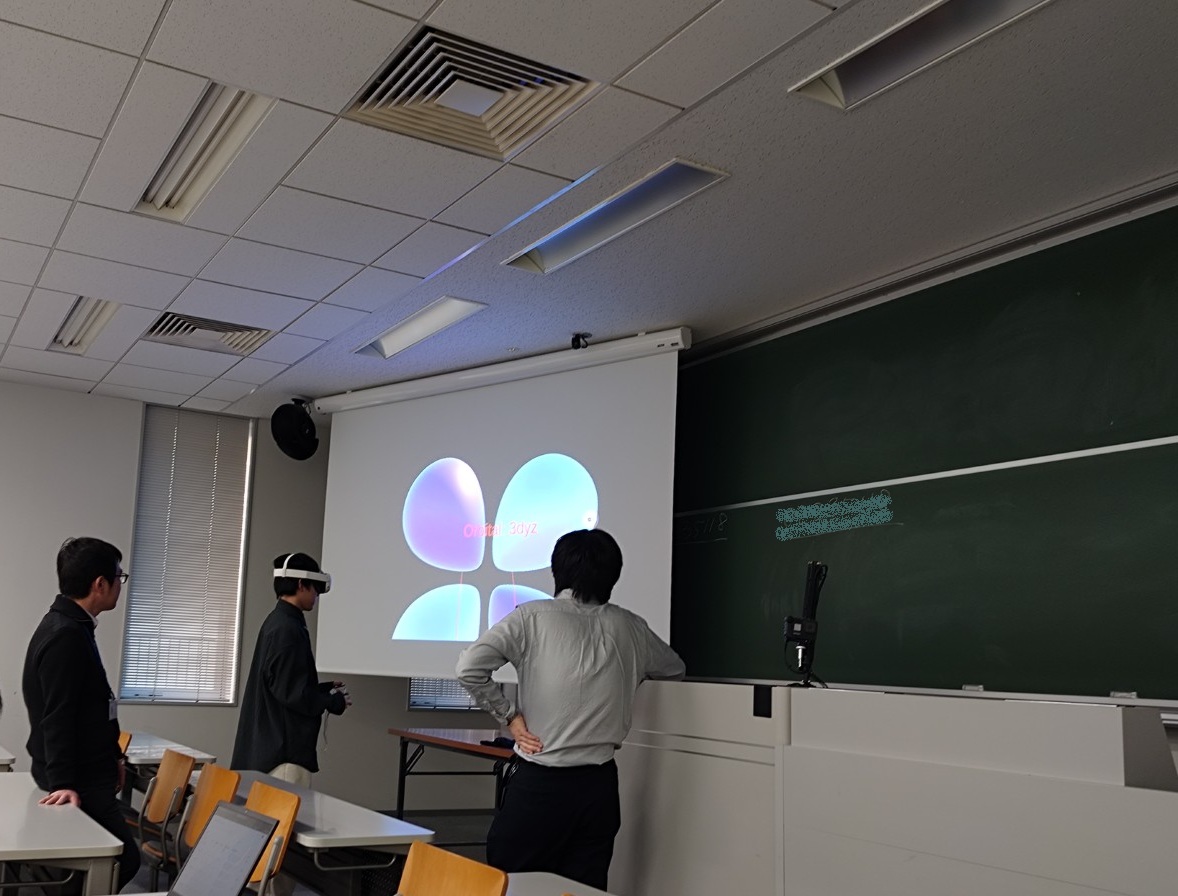 法政大学情報メディア教育研究センターの数納広哉教授は、法政大学理工学部電気電子工学科の加来滋教授担当の授業「応用物理学」の受講学生を対象に、 水素原子軌道可視化VRアプリケーション「Virtual Hydrogen」の体験デモを行いました。