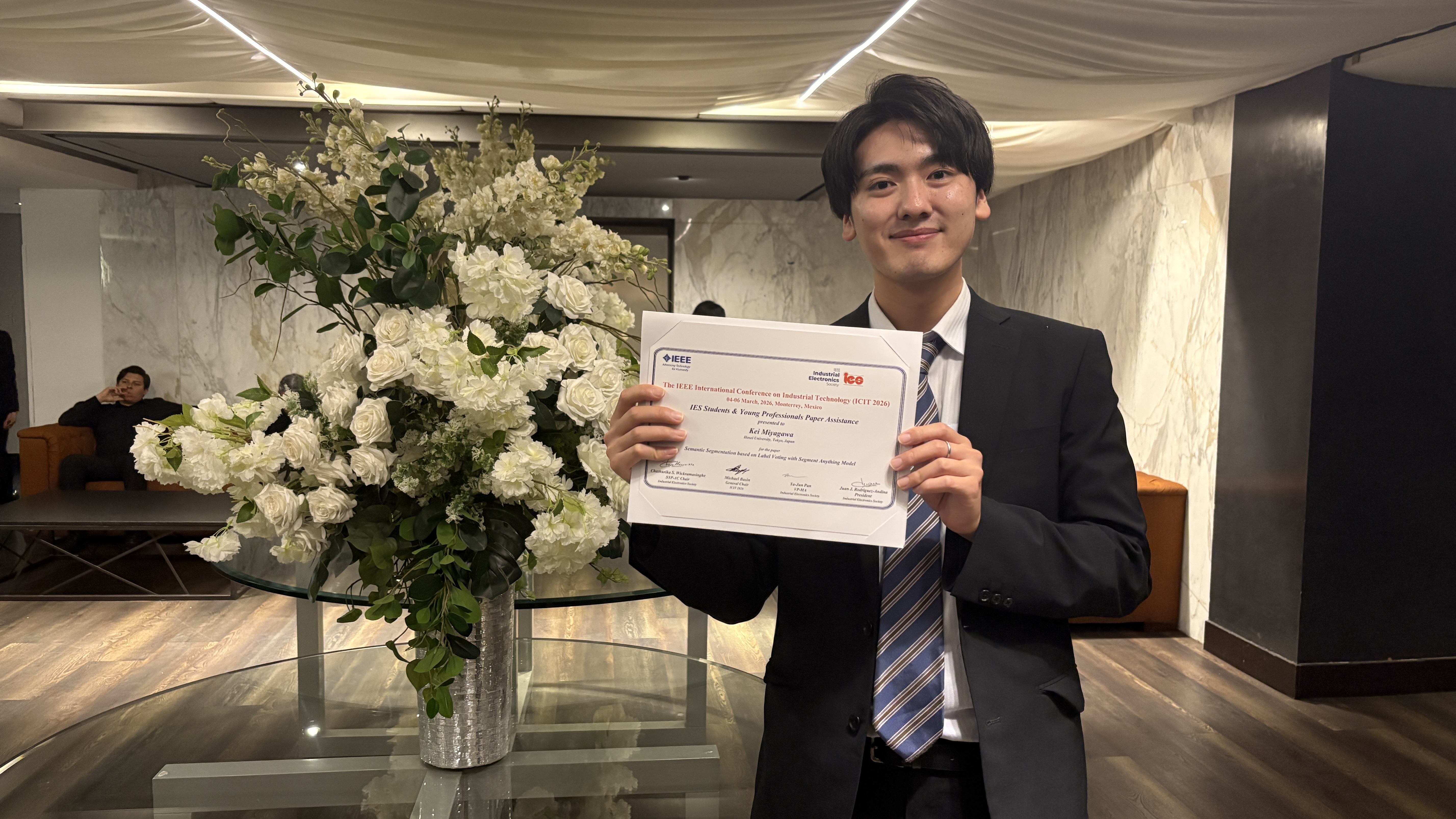 理工学研究科修士課程修了生の宮川 慶さん(中村 壮亮研究室)が、IEEE International Conference on Industrial Technology (ICIT 2026)でIEEE IES Students And Young Professionals Paper Assistance (IES-SYPA)を受賞しました。