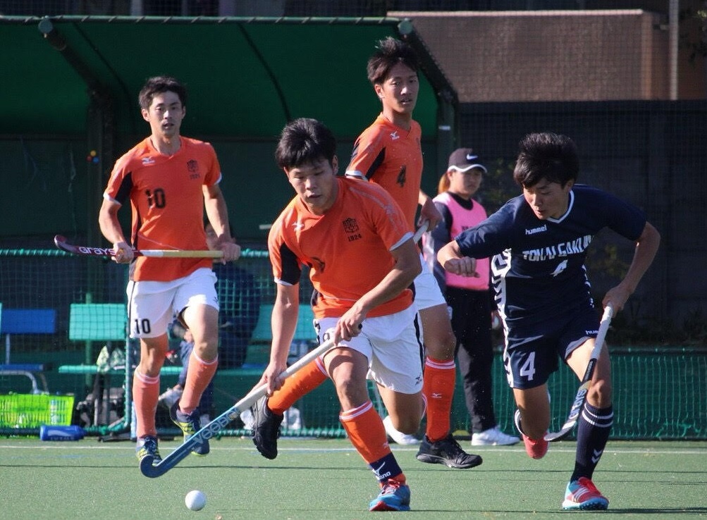 写真中央、対東海学院大学戦での鈴木i選手(写真提供:陸上ホッケー部)