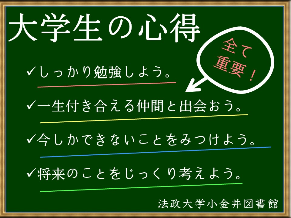 新入生の皆さん!これからの4年間を有意義に過ごせるような大学生の心得がギュッと詰まった本を選びました。