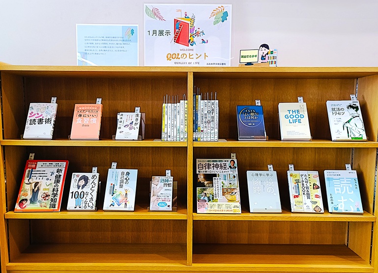 QOLはQuality of Lifeの略、身体的な機能だけでなく生きがいや幸福感など精神的な充実も大切にする考え方です。心身の健康、良好な人間関係、やりがい、質の良い睡眠など、心と体を元気に保つことは豊かな生活につながります。 趣味を楽しむこと、自然と触れ合うこと、人と交流すること… QOLを上げて素敵な1年に! 展示リスト