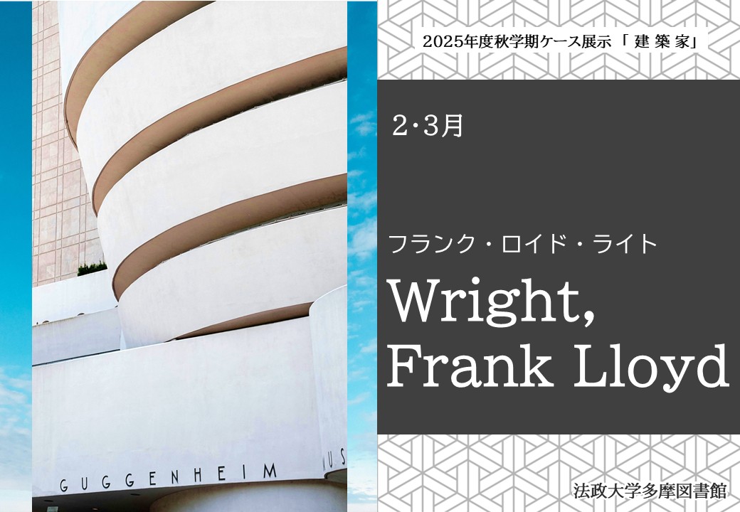 建築設計を800以上残した近代建築創始期の巨匠、フランク・ロイド・ライト。自然と調和した有機的建築を提唱し、現代建築に大きな影響を与えてきました。そんなフランク・ロイド・ライトが手掛けた作品の一部を、図書館資料でご覧ください。