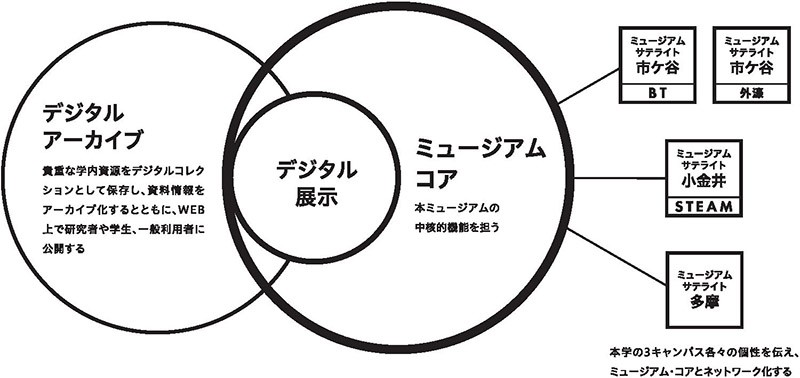多摩キャンパス開設以来の大学と近隣地域の「記憶とストーリー」を収集し、キャンパスの各所やデジタル空間上で展示し、大学と地域の未来を展望する場となることを企図しています。