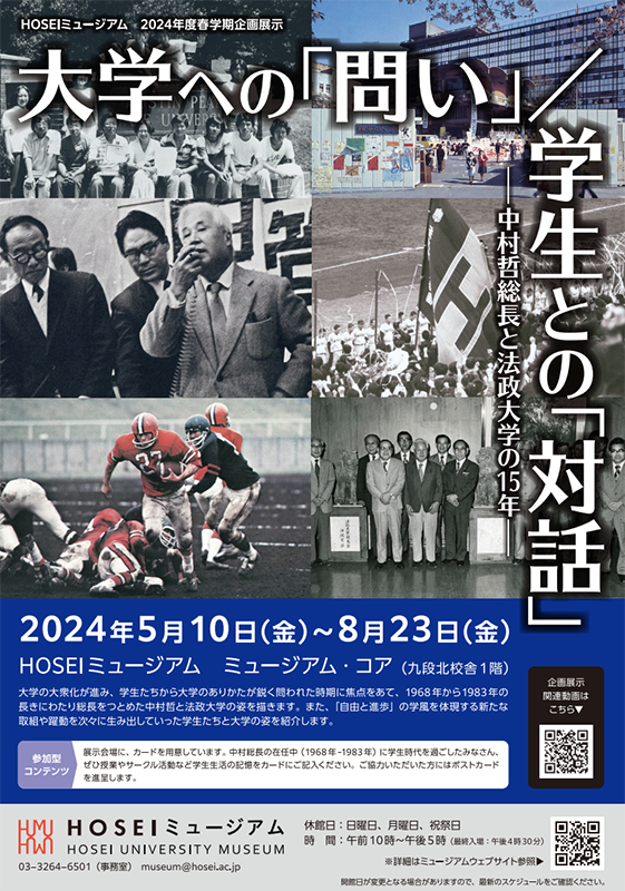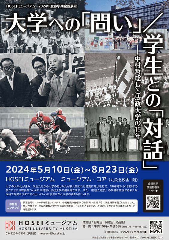 2024年5月10日(金)~8月23日(金)「法政大学の歴史・個性・文化」のなかの「大学への『問い』/学生との『対話』ー中村哲総長と法政大学の15年ー」