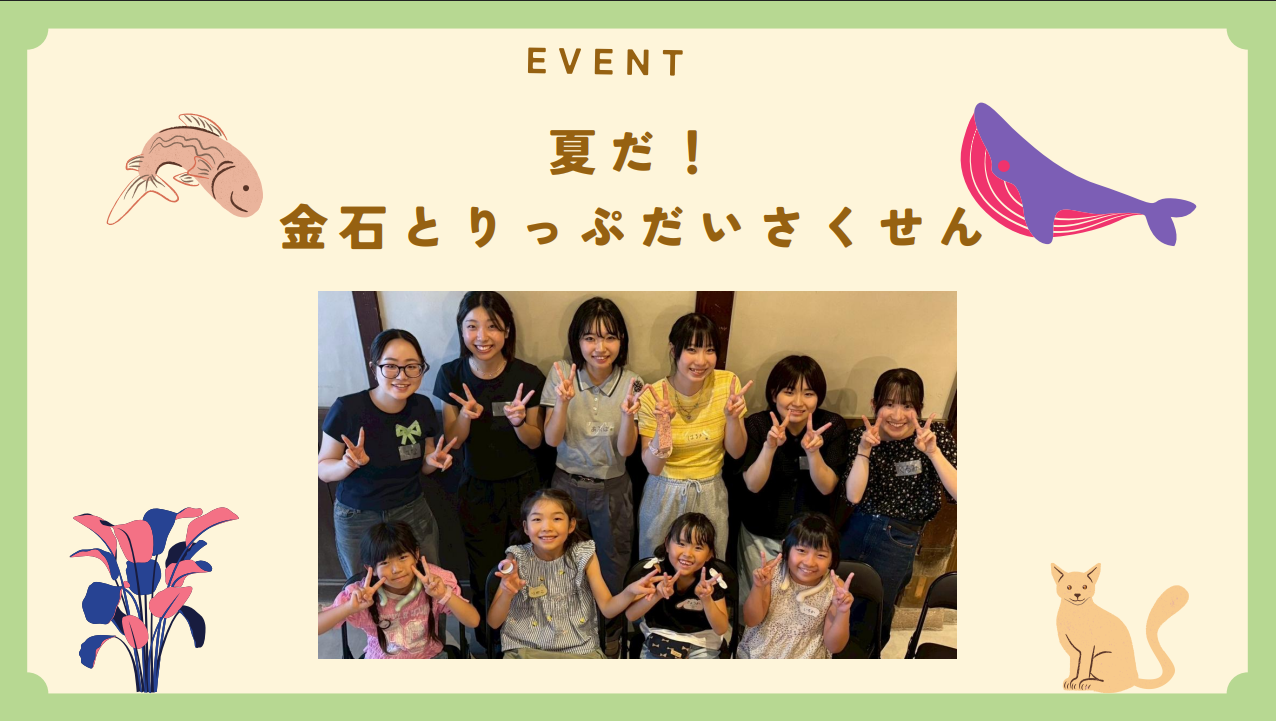 金光先生のゼミと、高田金曜3限4限ゼミの3つのゼミがコラボして、夏休みに石川県金沢市の金石町において小学生を対象に野鳥観察体験を行い、野鳥への親しみを深めるとともに、自然環境への理解と関心を育むことに加えて、地域の魅力再発見や愛着形成につなげることを目的とした環境教育活動を行いました。