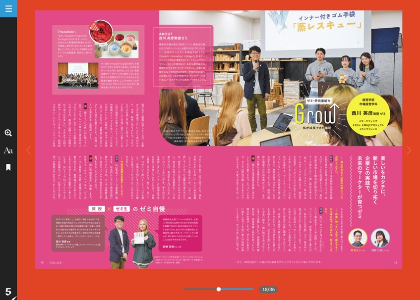 経営学部市場経営学科 西川英彦教授ゼミを取材。㈱宣伝会議主催の「販促コンペ」、㈱良品計画とのコラボレーション企画「MUJIプロジェクト」、未来のマーケターを育成する「Sカレ(Student Innovation College)」、日本マーケティング学会が運営する「マーケティングカンファレンス」への参加など、多彩な取り組みを展開しています。