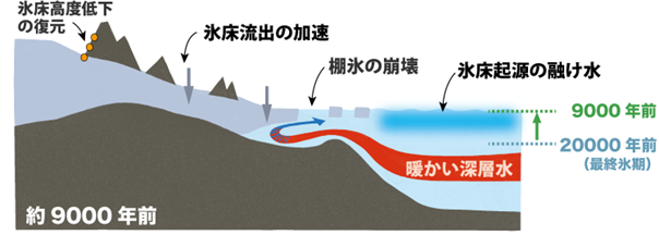 南極氷床の融解がさらなる融解を呼ぶ -9000年前に起きた南極氷床大規模融解の原因解析から、 将来、南極で起こりうる連鎖的氷床融解を提唱―