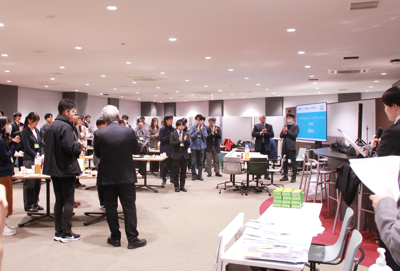 最終選考会では、プレゼンテーションと会場参加者からの質疑応答を行い、3大学の教員とマイナビ事務局から構成される審査員による審査の結果、最優秀賞など各賞(受賞一覧参照)が選ばれました。更には、3大学の共創と産業界との連携をイメージしたオープンバッジを授与しました。コンテスト終了後には3大学合同の交流会を実施し、普段は出会う機会の少ない他大学の学生や教員、マイナビ事務局と懇親を深めイベントは終了しました。