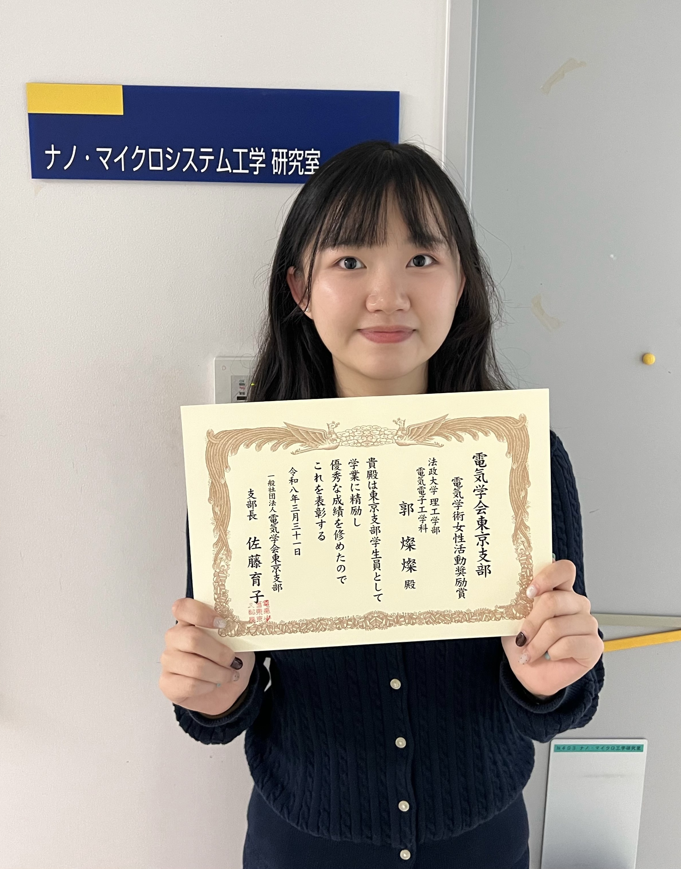 理工学部電気電子工学科卒業生の郭 燦燦さん(笠原崇史研究室)が電気学会にて「令和7年度 電気学会東京支部電気学術女性活動奨励賞」を受賞しました。