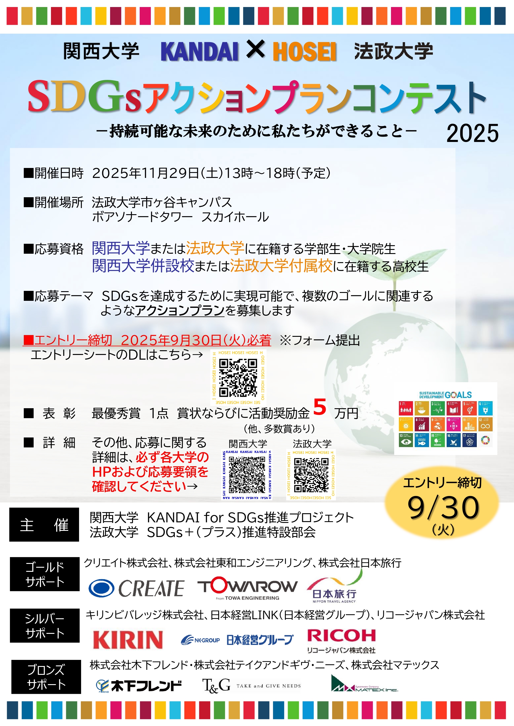 その一環として、本年度も「SDGsアクションプランコンテスト-持続可能な未来のために私たちができること-」を開催いたします。