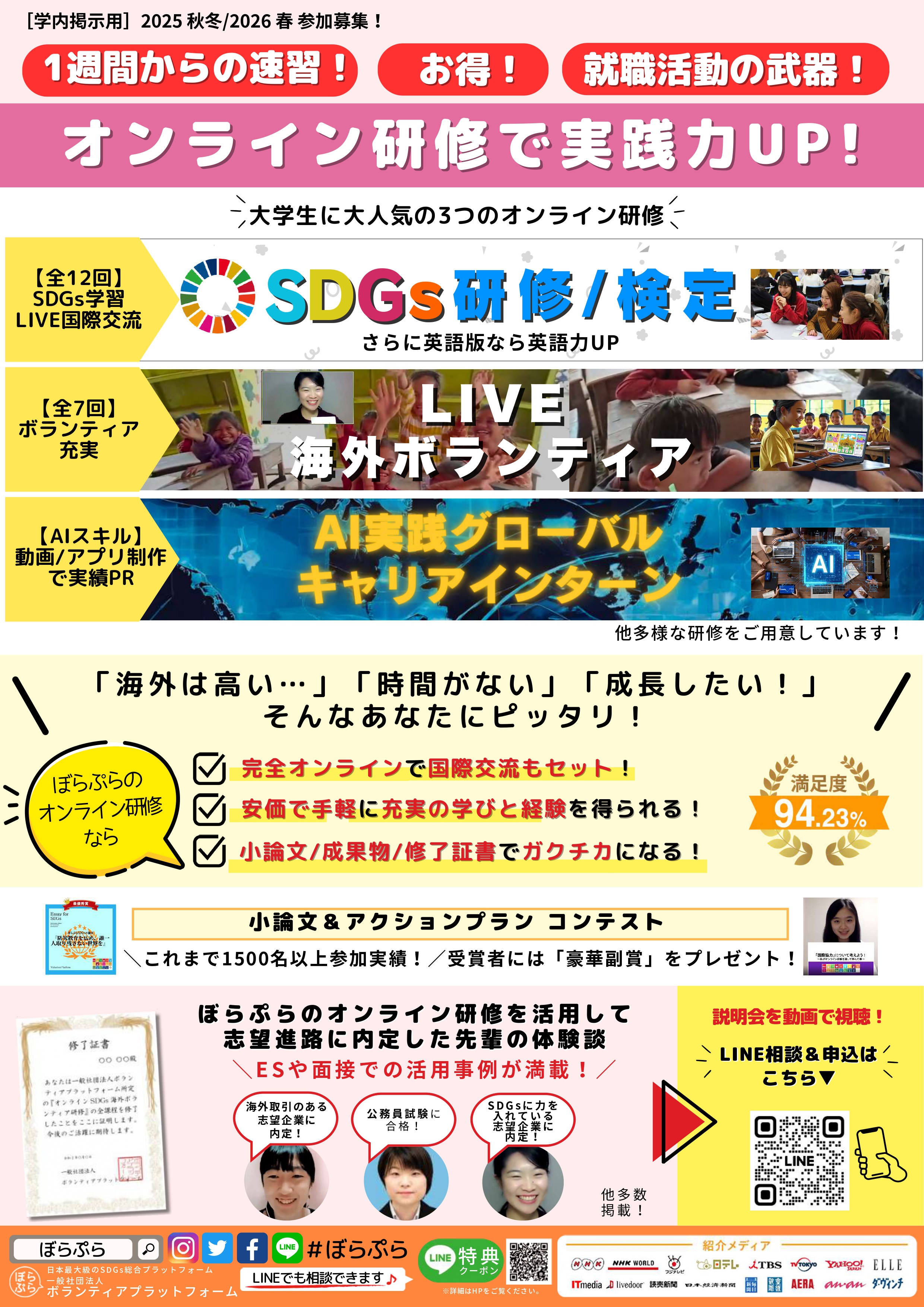 SDGs、海外ボランティア、スキルアップ、AI実践など、