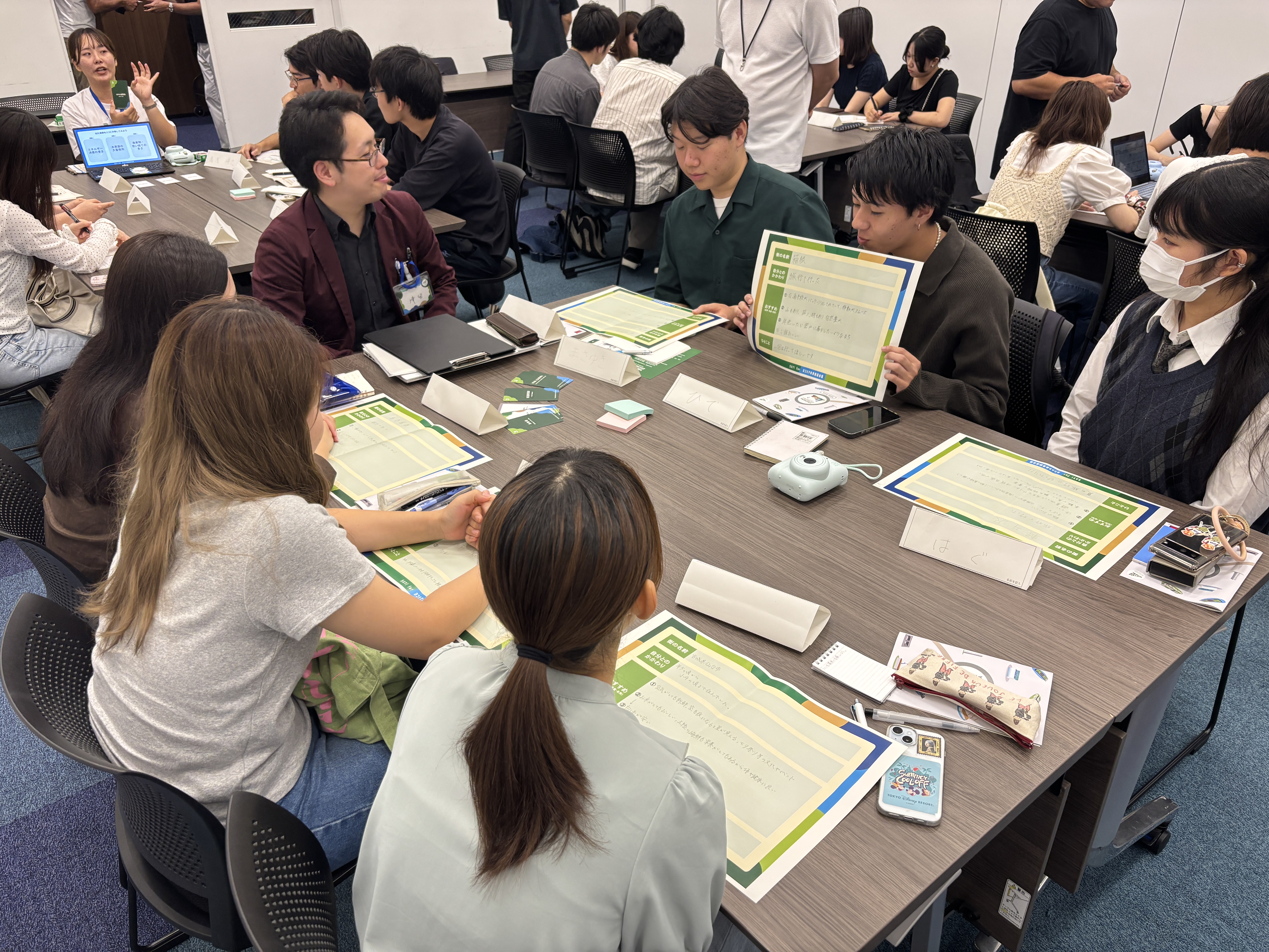 続いて、ヨコハマ未来創造会議内で、持続可能な旅をテーマに活動する「SAY!(Sustainable Adventure YOKOHAMA)」メンバーのファシリテートの下、持続可能な未来のまちづくりを考えるカードワークを実施しました。将来自分たちが暮らしたいサステナブルなまちをどのように作っていくかといったテーマを様々な職業視点で考え、今後解決すべき社会課題を設定し、その後のフィールドワークに向けて準備を進めました。
