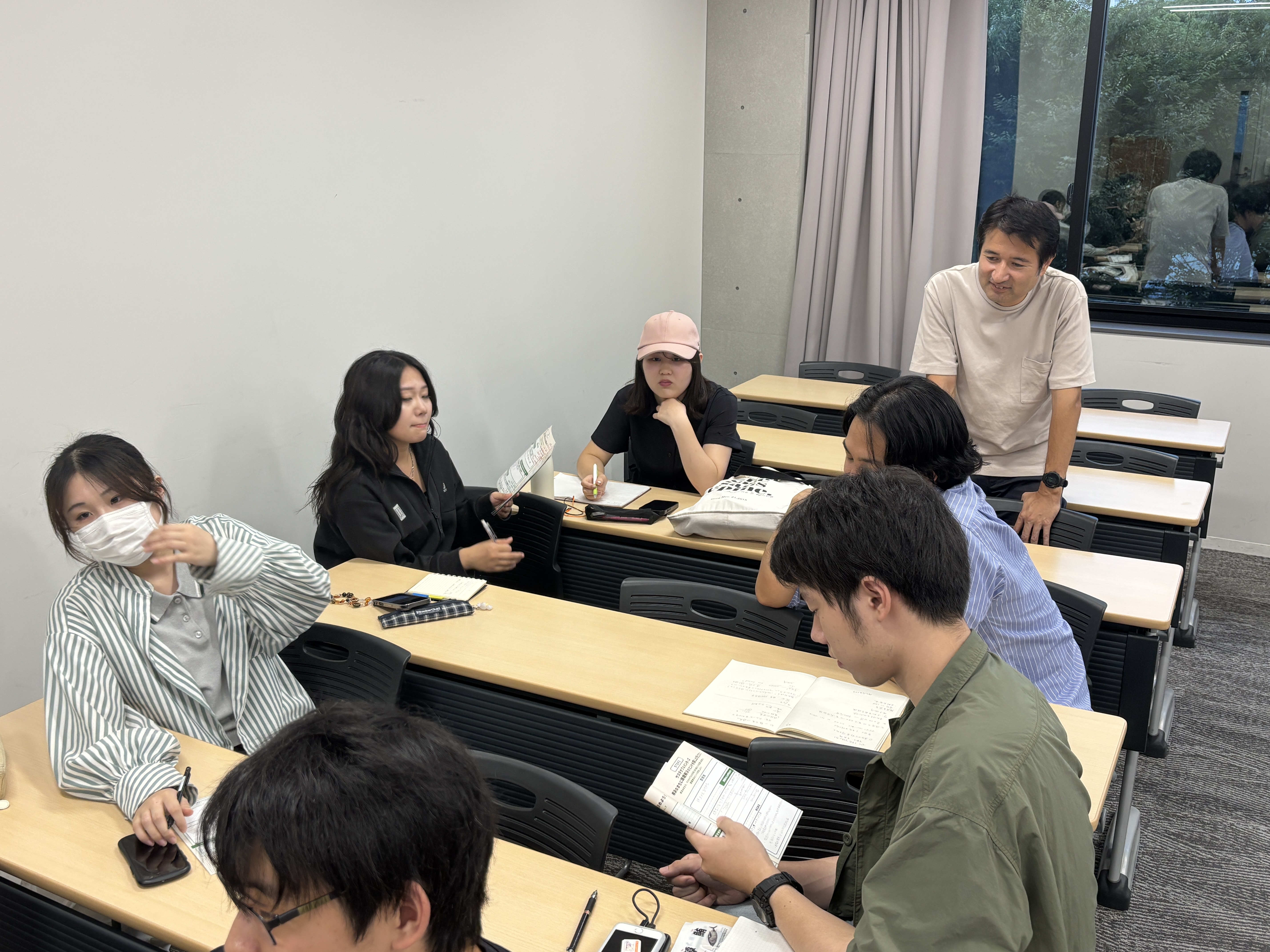 9/24は大学に戻り、これまで行った講義内容のおさらいとともに、9/20に行った現地フィールドワークの振り返りを行いました。各グループで、フィールド地の魅力や地域の方の「地域社会」への向き合い方、自分が共感する「ライフスタイル」等を振り返った後、全体でのシェア、フィールドワークでファシリテートいただいた「SAY!」の皆様からのフィードバックもありました。また、それらで得た意見を基にさらに議論を深め、成果発表に向けての準備を進めました。
