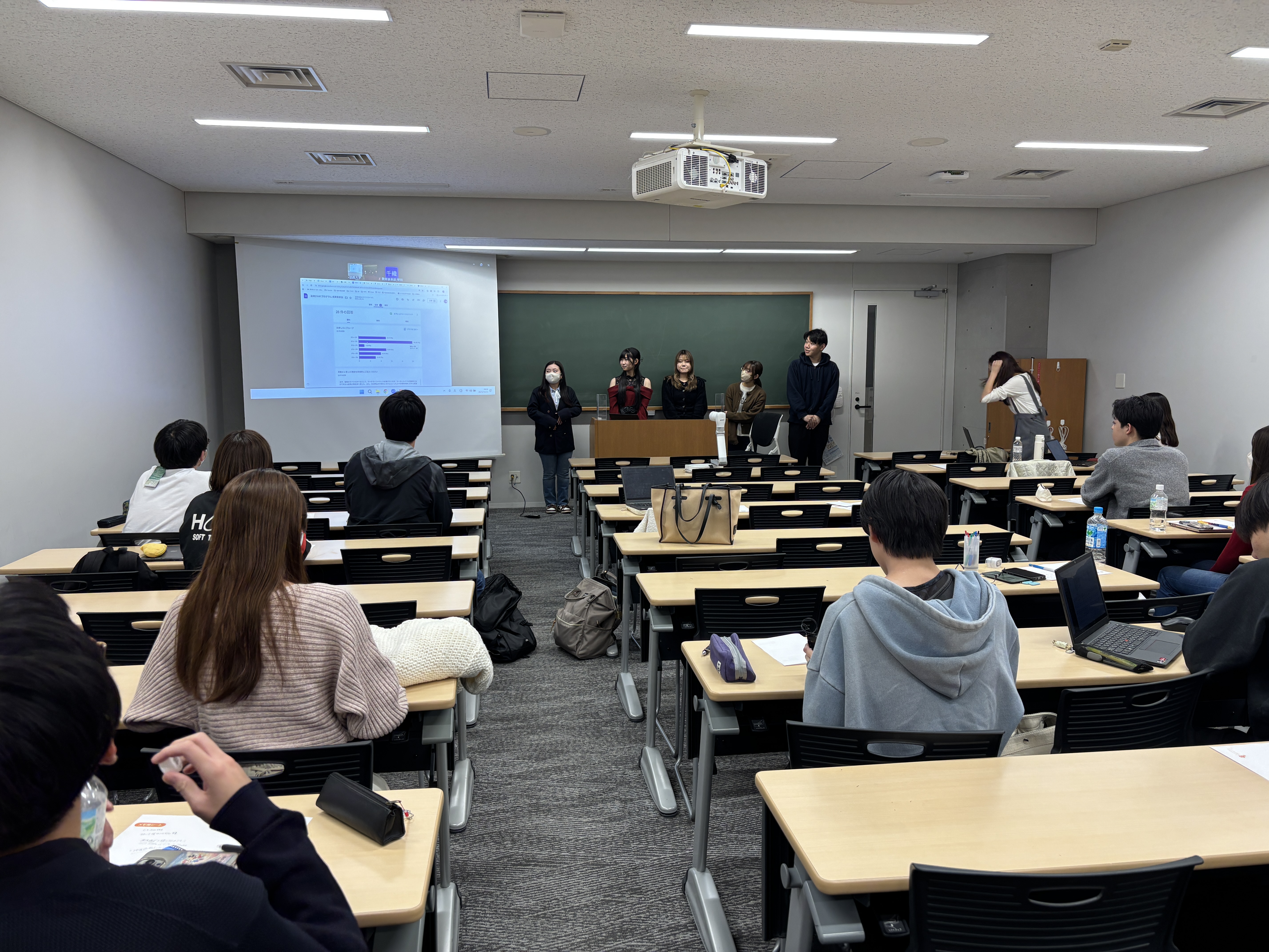 「自分が実現したいキャリア(ライフスタイル)と、横浜で実現したいこと」をテーマに、これまでの講義と現地フィールドワークを通じて学んだことを振り返りながら、グループごとに成果をまとめ、発表しました。グループごとに特色のある提案を行い、参加者各々が新たな気づきを得られたとともに、これからの自分たちのライフスタイルの在り方や地域社会との関わり方について考える良い契機となりました。